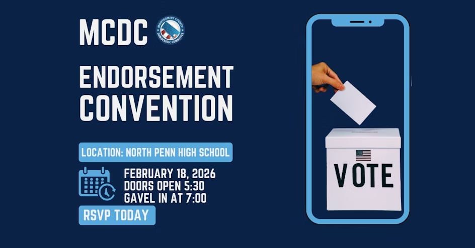 Join Us for the Montgomery County Democratic Committee Endorsement Convention! 📅 When: Wednesday, February 18th 📍 Where: North Penn High School, 1340 S. Valley Forge Rd., Lansdale 🕠Doors Open: 5:30 PM 🛎️ Gavel In: 7:00 PM Why Attend? This is your chance to be part of a key moment in shaping the future of...